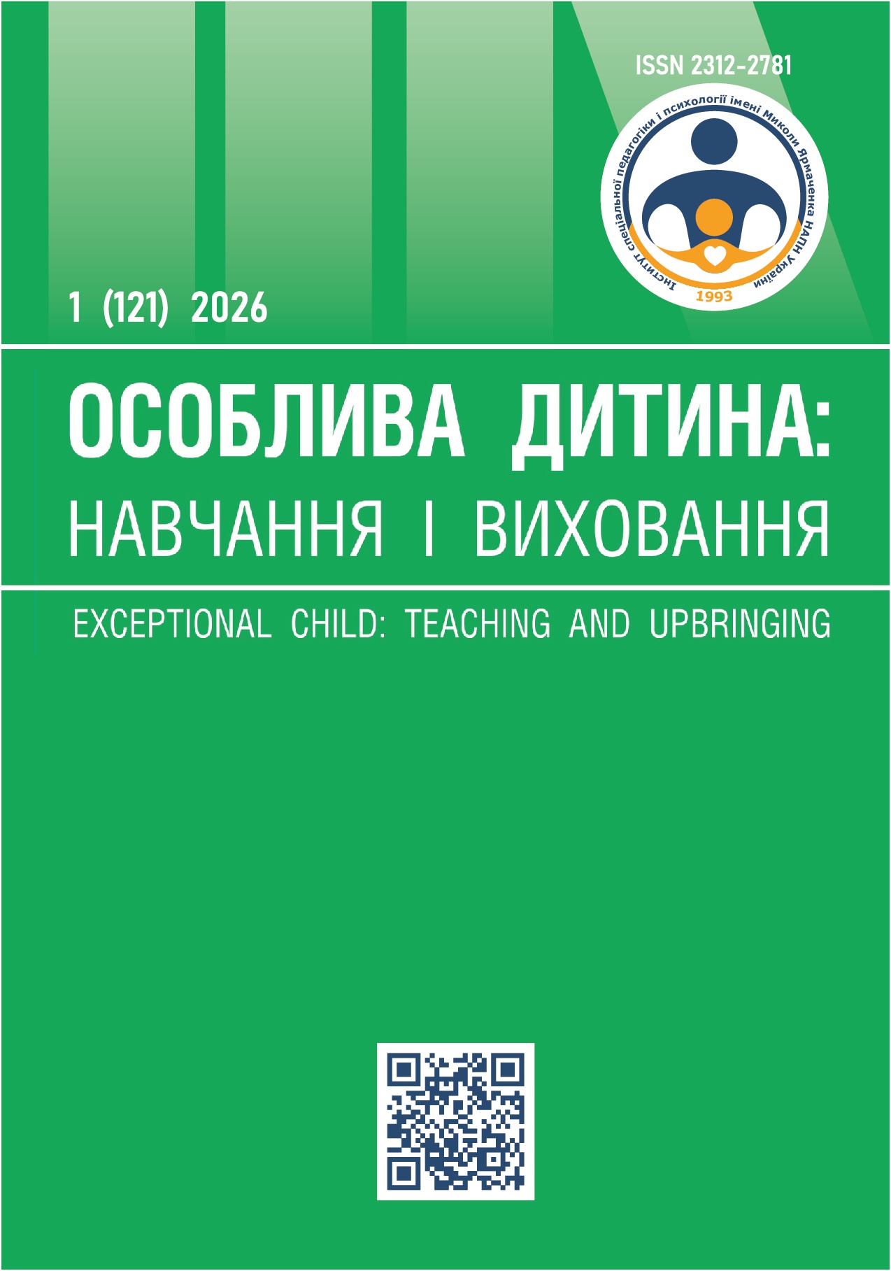 Том 121 № 1 (2026): ОСОБЛИВА ДИТИНА: навчання i виховання